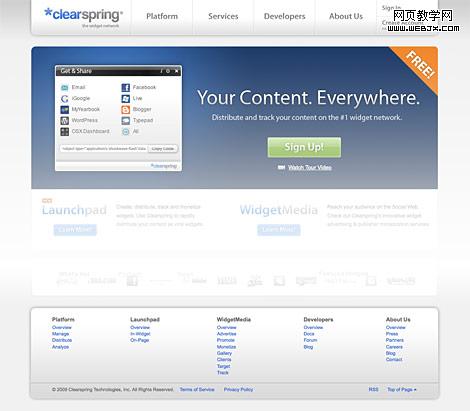 在clearspring网站,它将它的服务分成两部分:Launchpad and WidgetMedia.