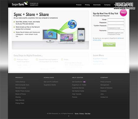 SugarSync的页脚只列出了网站的主要等级,而单独的网站地图列出了所有页。