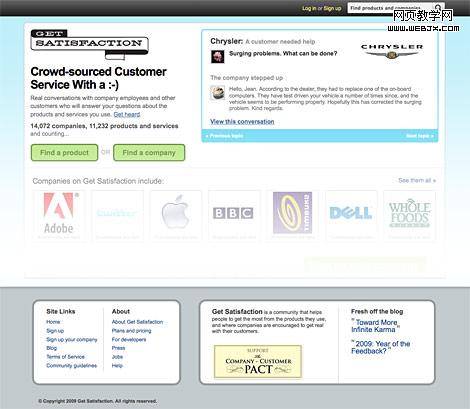 Get Satisfaction通过在页脚放置网站地图节省了他们网站头部的空间.