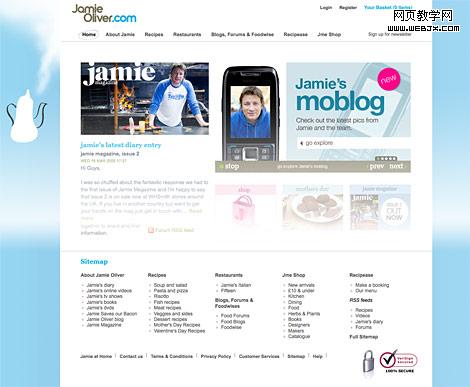 Jamie Oliver的网站在页脚也只提供了一个简单的网站地图,同时有一个链接指向单独的网站地图页面。