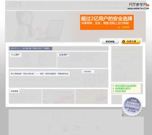 支付宝还有两处细节设计很体贴:一是“立即充值”按钮处,增加了“送积分”的冒泡效果,属于诱惑式营销的方式;另一个设计细节是动态信息公告,为了页面简约和节省空间,只放了一条信息,而一条信息很容易被其他版块内容淹没,设计师对这个区域作了重色处理,让用户一眼能看到,又不会占用太大空间,同时,右端有5个小圆点,表示信息的轮换,告诉用户这里有5条信息,目前显示在第几条。