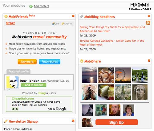 我曾经听说一些购物网站可以个性化定制界面,即使只是很微弱的定制功能。Mobissimo旅游搜索可以允许用户添加或删除widgets: