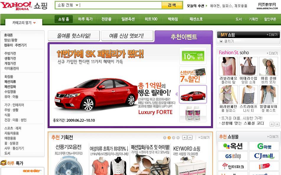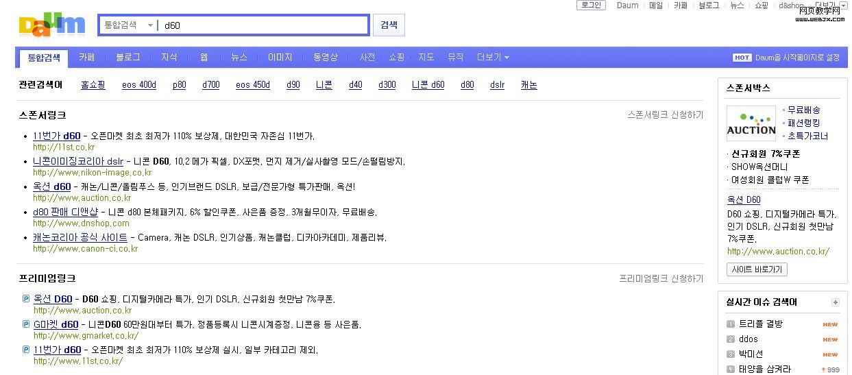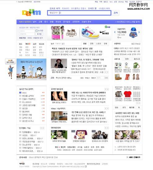 DAUM.com:和上面的网站类似,首页也是包含了购物广告,右侧几乎都是商品的展示位。