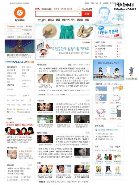 CYWORLD:在韩国相当于我们的开心网,首页的大BANNER是兄弟网站 C2C 11ST的广告,右下角亦是网购商品展示区(CPC)