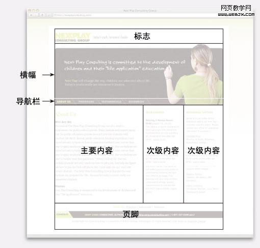 延续:我们已经将页面的主要元素及框架弄好,是时候增加细节了。我们要借用一下标志来帮助考虑细节的问题。因为标志比网页具有更持久的特性,我们要利用到标志的字体、颜色及其细节来设计网页的其余部分。