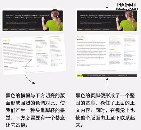 一向谦卑的页脚往往放着一些非常重要的联系信息文字,而且也发挥着一个视觉支撑点的作用。不要轻视它。