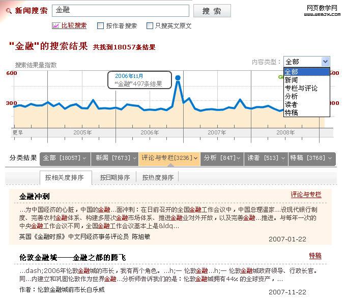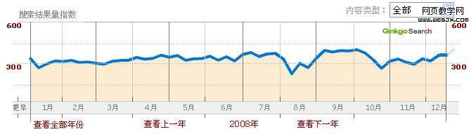 这个产品可根据某个关键字的搜索结果在时间轴上的分布,按时间区间输出搜索结果量的指数图,体现出到该关键字的新闻性时间趋势。
