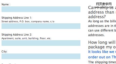 以下的表单有很方便、很易用的帮助元素,这些元素给出了举例和解释来帮助用户输入信息。