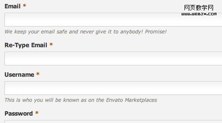 你希望更多的用户在你的网站注册,所以要做到尽可能的简单。有几种方法可以使登录与注册操作更容易使用,提供帮助元素就是其中一种,首先,就像之前提到的那样,你应该在注册表单添加帮助元素。