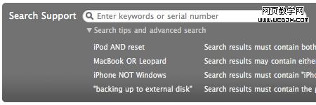 看一下方的Apple搜索框,有一个选项可以展开显示有用的搜索建议,帮助用户搜索产品支持主题。同时我们可以看到,链接撕开的提示列表不是支持帮助用户搜索,而是帮助用户直接方便的到达相应内容的页面。
