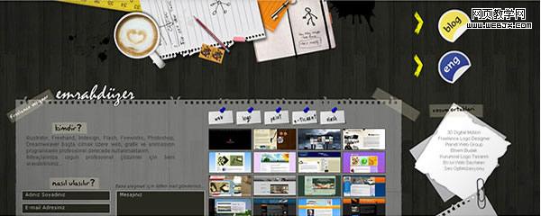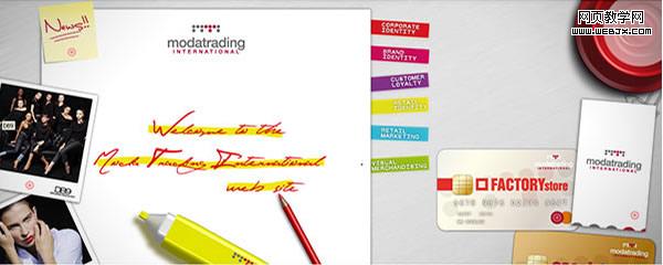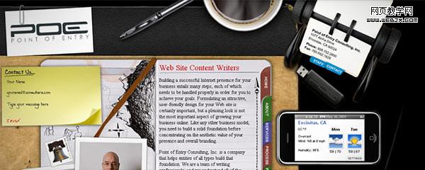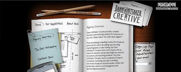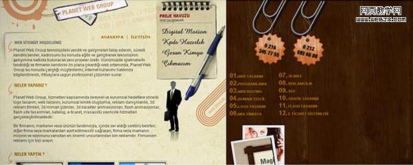 最近我发现一种有趣的趋势,很多设计师都在使用办公文具比如钢笔、铅笔、标志、回纹针、报纸杂志、书写纸、文件持有人(document holder)以及笔记薄去设计网站。现在的设计师喜欢观察人们如何运用及处理事物的,并将这些体验表达在他们的设计之中。尽管这不会是一个共同的趋势,但还是作为一种新的设计风格流行起来,随着越来越多的设计师注意到它们,并将他们运用到自己的工作上,这种新的趋势逐渐显露出来了。