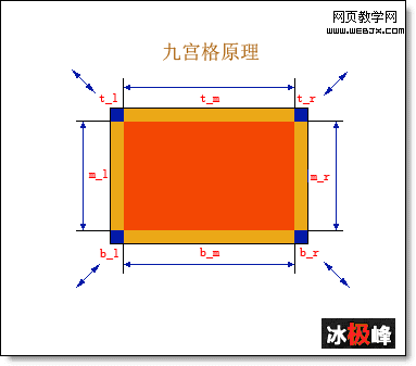 九宫格是一种比较古老的设计,它最基本的表现其实就像是一个三行三列的表格。其实它最初是在window的c/s结构中用得比较多,比如我们经常看到软件中的一个窗体,其实就是一个九宫格的典型应用,因为窗体需要在八个方向拉伸,所以在C/S软件中大量采用这种技术来布局设计。在B/S系统大行其道的当今社会,这种布局逐渐被一些网页设计师运用在网页中去,用得最多的就是在圆角框布局中应用。