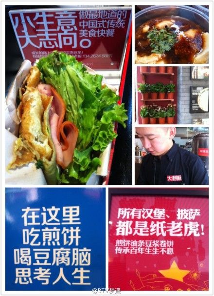四、整合传统媒体 社会化媒体,毕竟仅限于年轻人。而煎饼果子,却是老少皆宜的,对所有客人都开放的。电视,目前还是强势媒体,具有广泛的影响力和受众基数。黄太吉在自身的推广过程中,主推社会化媒体,同时也热情拥抱”电视媒体。正是通过北京电视台的”BTV美食地图节目“,才让这家店让更多的吃客熟知,影响力社会化媒体扩散到全社会。