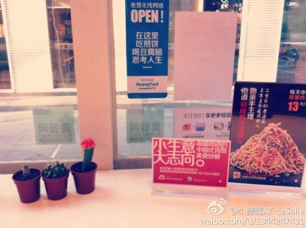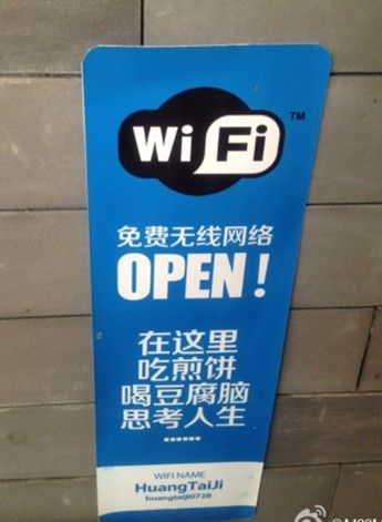 据说,老板原来的是百度的设计大拿,因此在店面的摆设上,到处都是“别有匠心”,细节之处见功夫。店里的陈设,是直接面对消费者的,食客见了好玩的东西,都会第一时间发微博分享。这些“别有用心”的摆设,成为消费者微博上的好素材,也让消费者无意中成了“商家”的义务宣传员。有这么多“创意”和“分享”元素,黄太吉在微博上迅速走红,就不足为奇了。 而一个煎饼铺里,还提供无线上网服务,乍一听让人感觉匪夷所思。他们之所以这么做,就是想建立一个“分享”的环境和氛围,让大家快速的把自己“用餐经验”快速的分享出去,传递给自己的朋友。 不得不说的是,他们的广告文案也的确很棒。