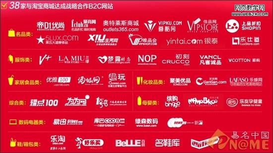 昨日淘宝商城宣布推出新战略,其平台将对所有零售形态开放,搭建新B2C生态系统,包含红孩子、走秀网、一号店、银泰网、库巴网、易迅、乐淘、新蛋、好乐买等38家电商网集体入驻淘宝商城,又再次令域名界内大为关注,这38家电商网域名类型多元化,如拼音域名、创意域名和英文域名等,38个电商网域名都有哪些故事?