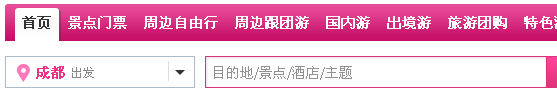在上图我们看到的搜索框肯对于经常逛旅游网站的人来说肯定并不陌生,因为这种搜索框最常出现在旅游站点上。我们可以看到在搜索框的前半部分为让访客选择的条件:出发地点。例如笔者想知道上海周边有什么景点,那么可以选择上海,然后再填写你想要的旅游景点。我们知道站内搜索功能的目的是为了服务访客,方便访客,但是我们看到有的站点本末倒置,站内搜索功能设计得让访客看不懂怎么用或者不方便使用,这就好比一个内容有限的企业站点结果设计了一个多条件搜索,这看起来是为了方便访客,其实是让访客用着头大。