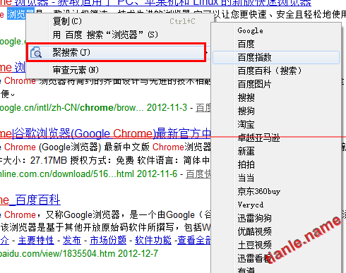 我们每天都需要获取大量的信息,而绝大多数的获取方式都是通过搜索引擎,所以浏览器能否实现快速高效的搜索就显得比较重要了,现在的浏览器大多数都自带了快捷搜索框,却没有办法实现划词搜索、自定义搜索引擎这些功能,而chrome作为一款主流浏览器怎么能缺了这些功能呢?下面推荐一款chrome的搜索增强插件-聚搜索 for Chrome 6 and higher version,有了这个插件会是你的搜索有更高的效率。