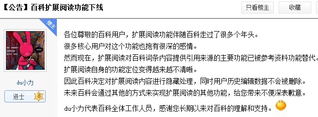 百度百科扩展阅读下线公告