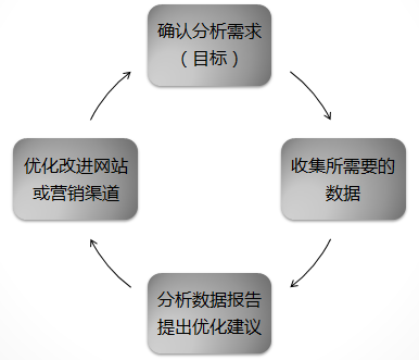 下图是一个网站分析的生命周期示意图,在确认好分析需求并收集好我们所需要的数据后(强调一下,明确分析需求很重要,这可以避免为了分析而分析),我们就可以充分使用网站分析工具的各种报告对数据展开分析。