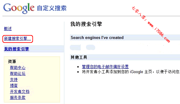 1、登陆Google自定义搜索,选择新建搜索引擎。