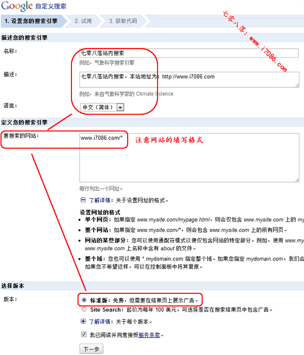 ③选择版本:当然选择“标准版:免费,但需要在结果页上展示广告。”