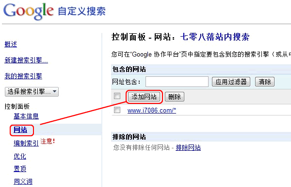 ②定义您的搜索引擎:这里我们输入要进行全站搜索的网站。(提醒注意→要搜索的网站填写格式为:www.***.com/*)