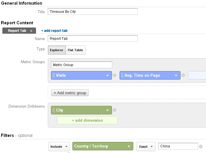 当然在中国的网络环境下,网页加载速度还受所在城市,网络运营商等因素影响,这时可以按城市,页面加载时间,配置一个自定义报告: