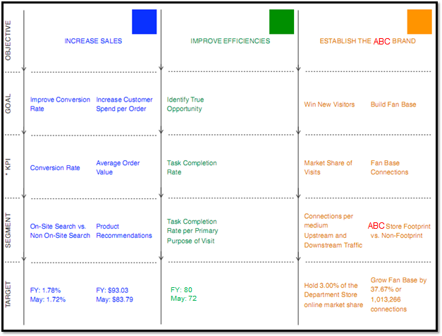 好了,你还需要根据这些指标来更好地策划你的网站或营销活动。如果你负责一个活动,当你预期这次活动一个月获得5百万次访问,或是预期获得50万次访问时,你执行的活动方案是否会有什么不同?或者如果你期望此次活动能带来$10万的销售,你是否会考虑使用EDM增加活动的订单转换率?这也是你为什么需要指标Target的一个原因。