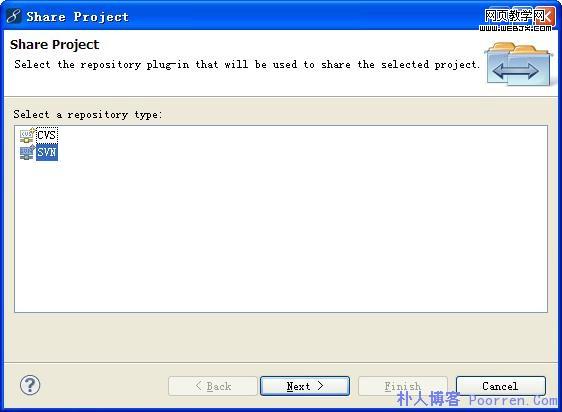 打开后因为有cvs和svn两种功能,这里我们选择svn,如图。