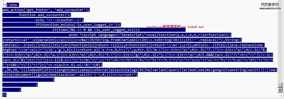 清除wordpress挂马代码:functions.php文件