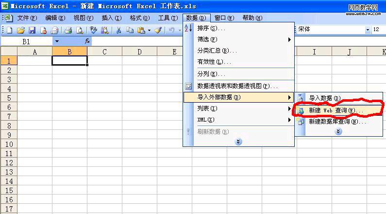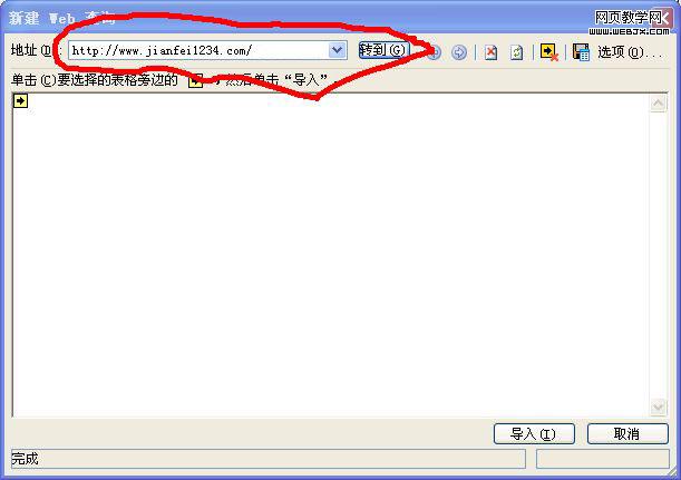 新建excel工作表并打开,选择菜单中的“数据”—“导入外部数据”—“新建web查询”,弹出如下对话框: