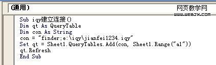 运用如下的VBA代码运用本地IQY文件建立连接,并将对应的网址的索引号为3的表单内容显示在本地excel工作表中。