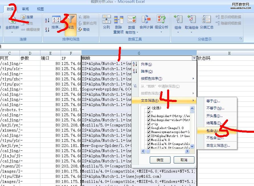 然后选择A1列>右键>插入 然后将C,D,E,I列删除。在第一行分别输入:日期,时间,网页,参数,端口,IP,蜘蛛,状态码 另外说明一下参数,参数这个是动态网页面问号(?)后面的部分。http://www.***.org/jiaju/chufang /5309_3.html 这个路径后面的参数值为3,那么组合之后真是的URL就是http://www.***.org/jiaju/chufang /5309_3.html?3 因此说明蜘蛛还是可以分辨参数的,有些网站投放广告后面经常都会带上参数进行统计,但经过抓取后参数都会被去除的。所以尽量不要在内容页使用此类的URL。