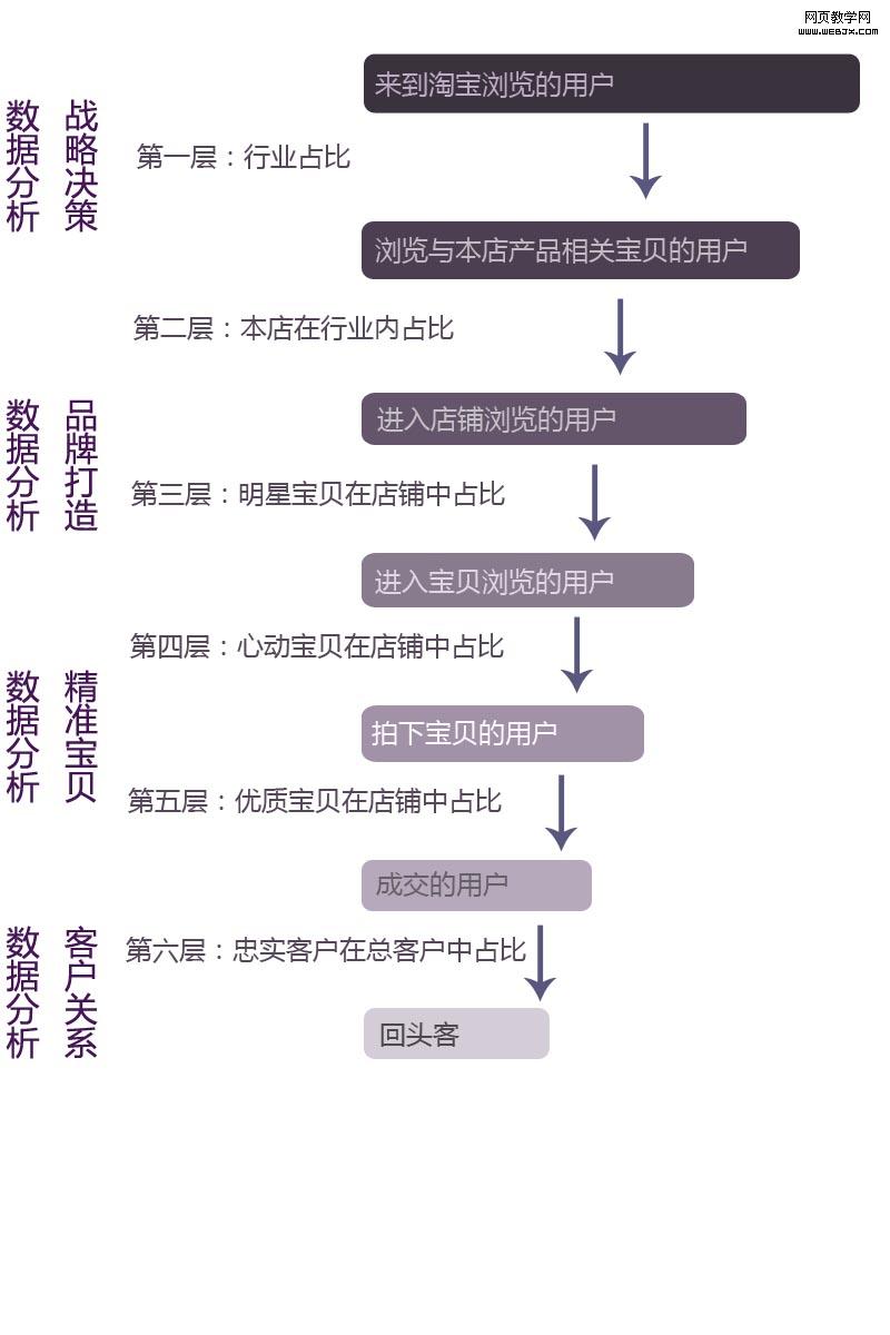 以下是对于不同层面转化率的简单概括,四个模块,六个层面