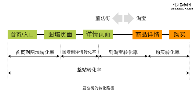 图中可以看到,蘑菇街的浏览-购买路径,存在“在蘑菇街逛”和“去淘宝买”两个部分。
