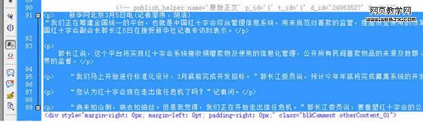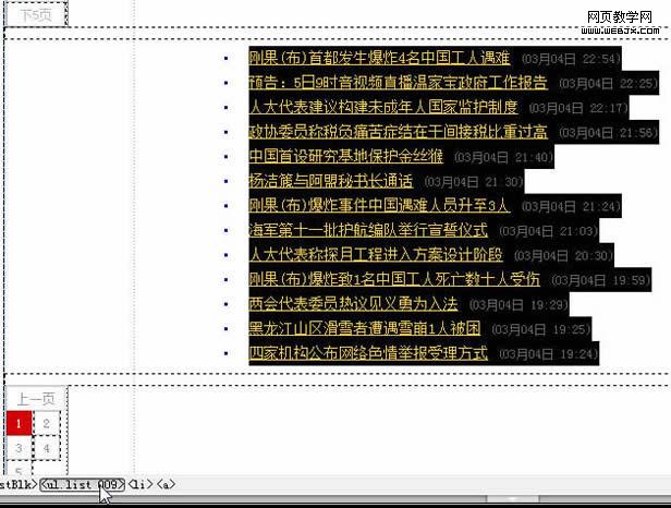7、把源文件代码copy到Dreamweaver里,在Dreamweaver里选定要采集的信息链接区域: