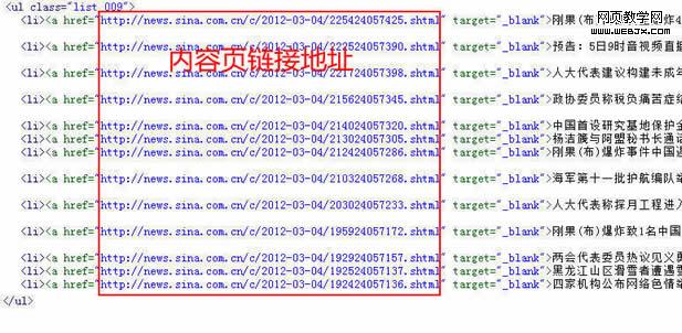 6、这里是设置采集的列表信息链接区域正则,我们点击查看新浪各地新闻列表“源文件”: