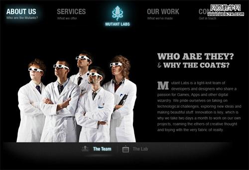 拿上文提到的“关于我们”页面为例。Mutant Labs是一个英国设计与开发公司。该公司网站上的“About US”页面,不仅有趣,还加入了一些个性化的元素。只要把鼠标移动到团队成员上,对应的成员就会跳出来做一个“招牌”动作。这使原本枯燥的公司简介变得十分有趣了。