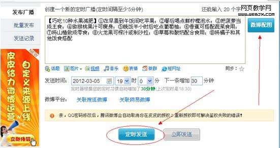 如图,选好时间定时,配好图片。一切就OK了。这里再啰嗦一下,介绍一些写内容的小技巧给大家。一条微博一般有一个主题,比如上面那条,把主题用【】符号标明,等于是一个小标题。切记内容一定要原创。看下图:刚发的微博就被转发出去了!