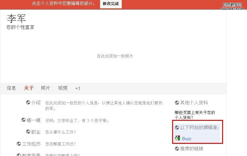 ·登录Google个人资料:http://profiles.google.com/me/ 国内可能有的地方无法访问,请自行解决