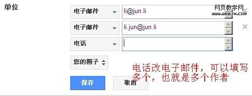2.添加网站代码、邮件地址或作者名,与google+个人信息连接