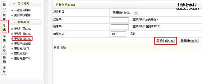 6、保存之后,您还需要更新文档html使您的更改生效。只需在“生成”选项卡中单击“更新文档HTML”,最后选择开始生成即可。