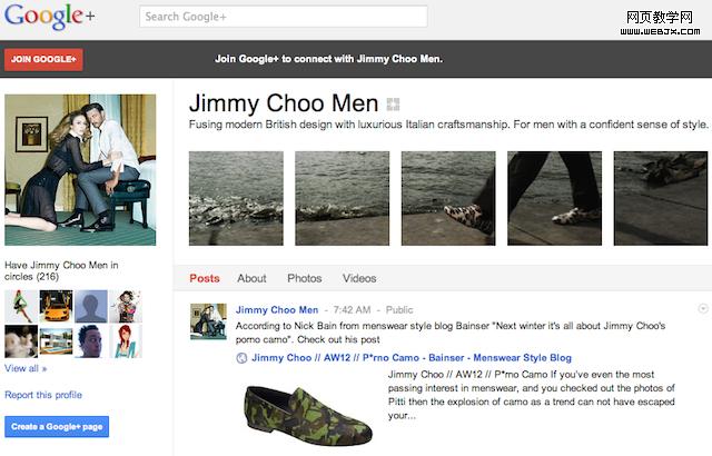 最近,Jimmy Choo 把注意力投向了Google+。去年11月发布的Google品牌页面和Jimmy Choo在伦敦伯灵顿商场开设的第一间男装店相辅相成。