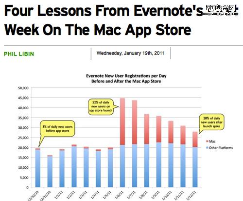在区分’’自我推销’’和’’真实案例分享’’两者的差异上,Evernote可算是做得出类拔萃。Phil Libin,Evernote的CEO为TechCrunch贡献内容,分享那些推广Evernote iPhone应用的绝密一手经验资料。文章包含一些惊人的数据,为许多读者提供了大开眼界的机会。