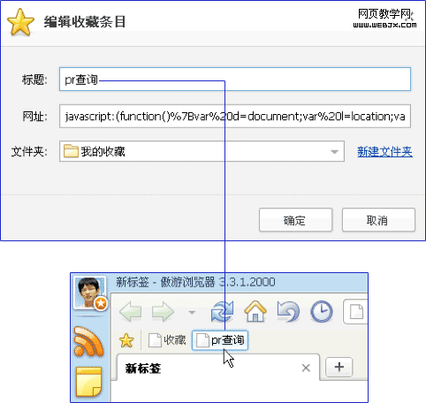 添加上面的js代码到自己的书签就可以了。在需要查询pr的网址,直接点书签即可: