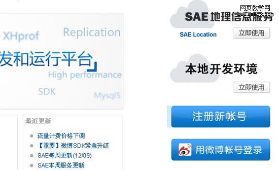 1、首先打开网址:http://sae.sina.com.cn,进入网站后,需要使用新浪微博账号登录新浪SAE,没有新浪微博账号需要注册一个。
