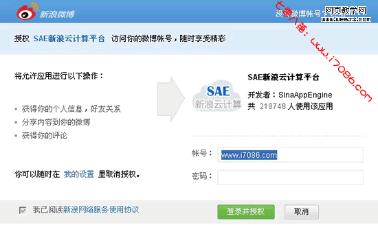 2、使用新浪微博账号登录新浪SAE。