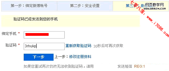 4、输入手机接收到的验证码。