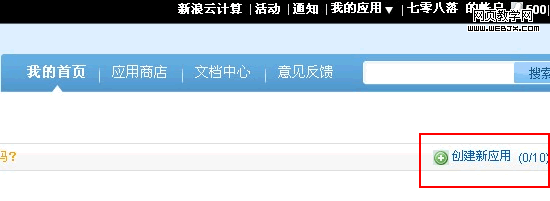 5、点击创建新应用,开始创建新浪SAE。