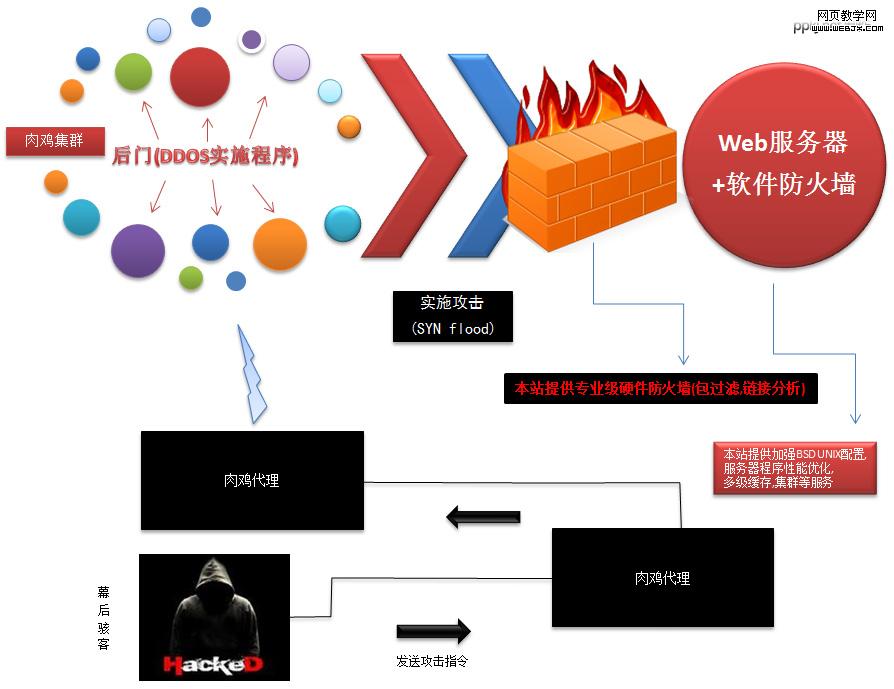 3 有支持你的服务价值的机器集群来抵抗应用层的压力,有必要的话需要将一个http请求继续分解,将连接建立的过程压力分解到其他的集群里,这里似乎已经有一般的硬件防火墙能做这个事情,甚至将正常的http请求解析过程都进行分解,保证到达后端的是正常的请求,剔除掉畸形的请求,将正常的请求的请求频度等行为进行记录和监控,一旦发生异常就在这里进行应用层的封杀